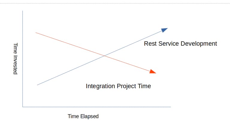 The rather unscientific graph on the right shows effectively what’s been happening for the last 5 years at Polonious. As we invest more time and effort into our REST services, the time taken to integrate to new platforms decreases.